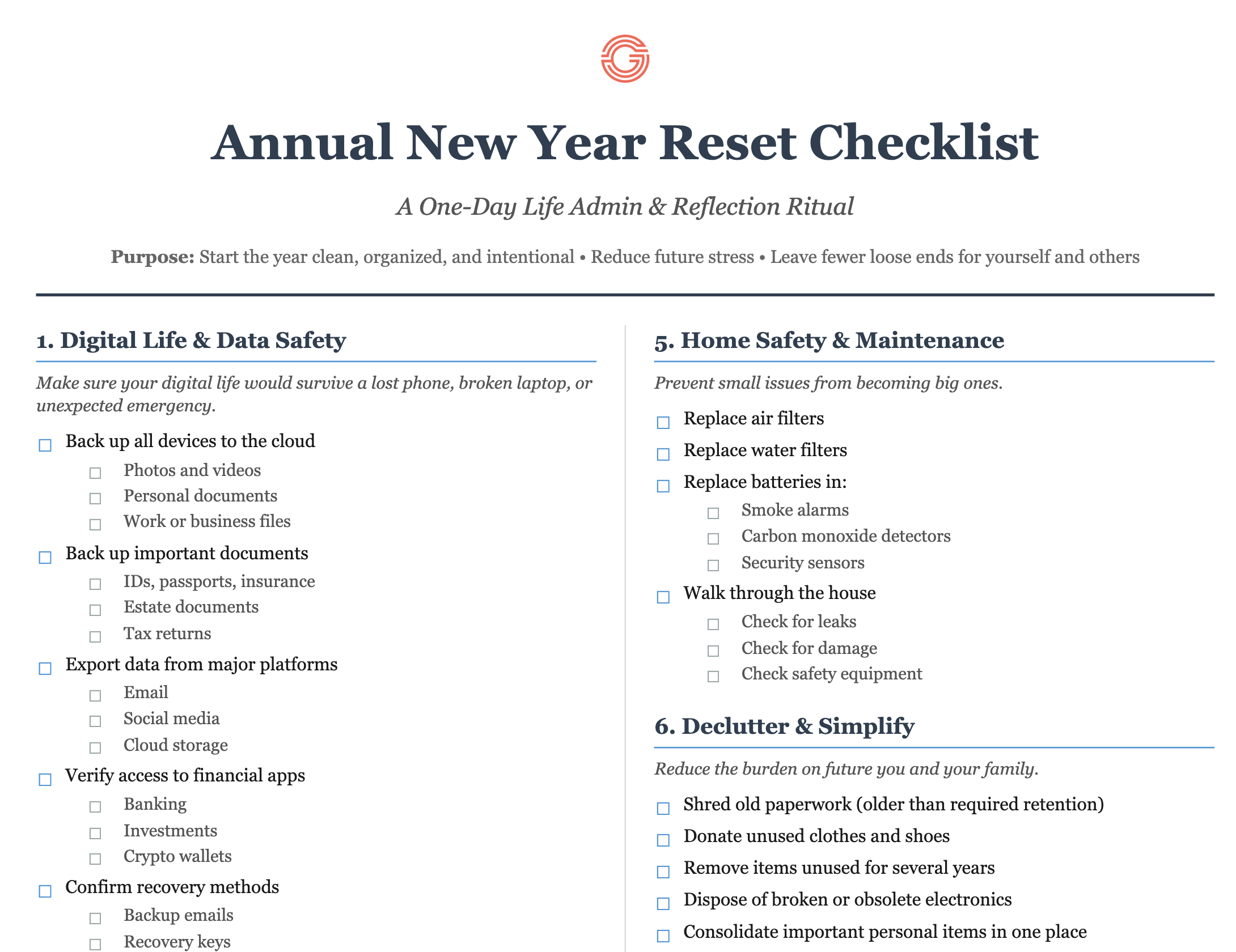 That is where this New Year Reset checklist came from.
